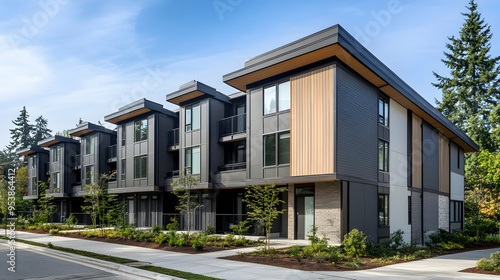 The exterior facade of a modern multifamily building adorned with Hardie plank siding.illustrartion