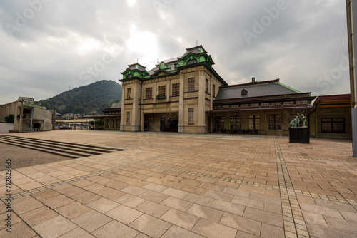 The facade of old Mojiko station building in Kitakyushu, Fukuoka, Japan.