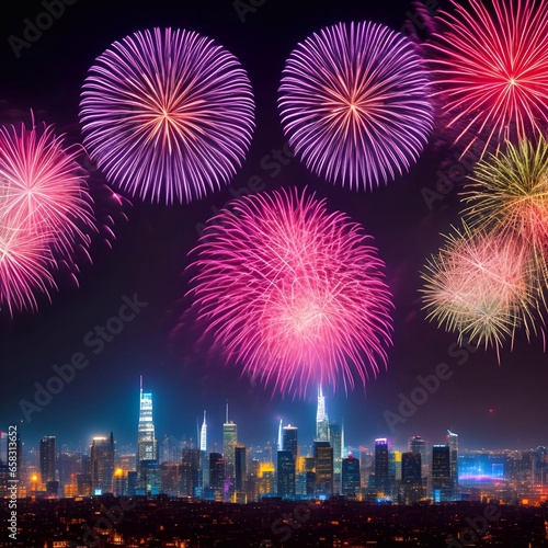 the Fireworks over the big city new year celebrating generative ai illustration art