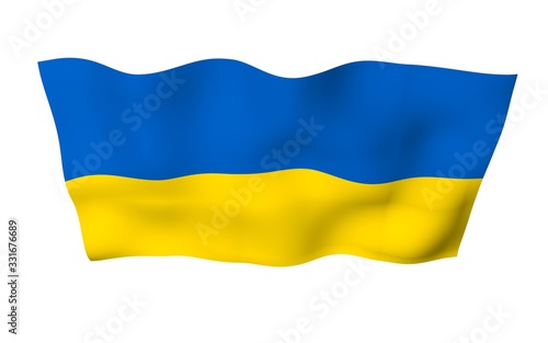 The flag of Ukraine on a white background. National flag and state ensign. Blue and yellow bicolour. 3D illustration waving flag