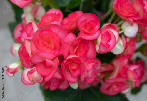 The floral background of Red Begonia flowers blooms with natural soft light. The ornamental flowers for decorating in the garden.