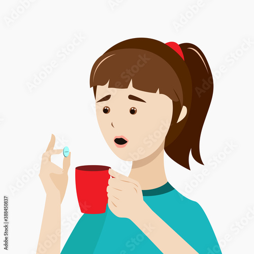 The girl is going to take a pill