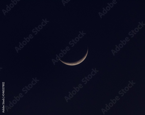 The gorgeous crescent moon glowing in the dark night sky...