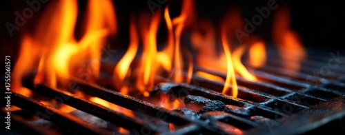 The Grill Flames Dancing Over Charred Metal Grates for Outdoor Summer Barbecue