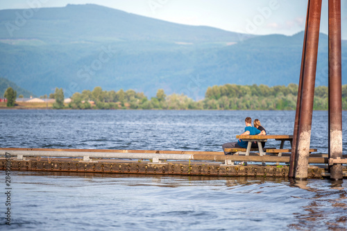 The guy and the girl met on a date on a floating dock on the Columbia River