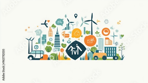 The icons include a car, a windmill, a house, and a clock