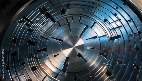 The image is a close-up of a shiny metal surface with a circular pattern of concentric scratches.light in the dark