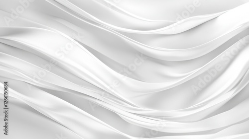The image showcases flowing white fabric with elegant waves and folds, creating a serene and soft visual effect. Ideal for backgrounds or design.