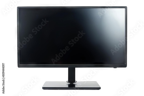 The image shows a generic computer monitor with a black screen. The monitor is sitting on a black stand. The monitor is surrounded by a white background.