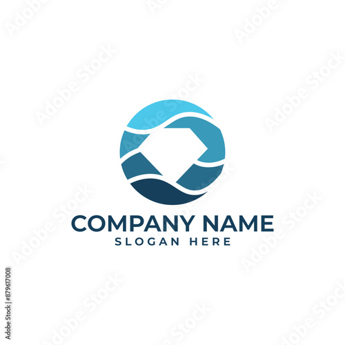 The Lettermark O Jewelry logo with the diamond is in the negative space and with the ocean theme in navy blue to light blue color