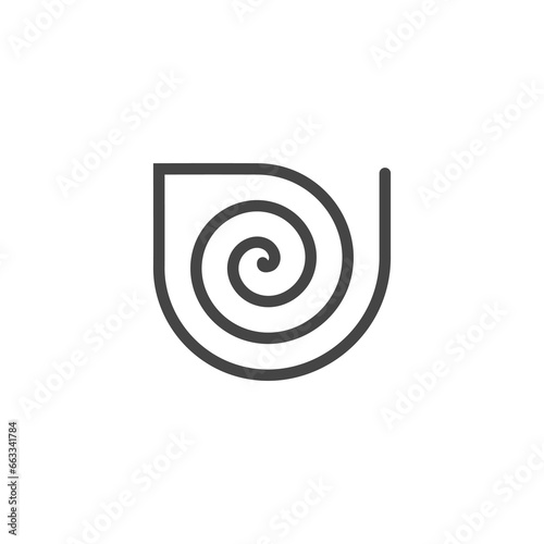 The monogram is the letter U and spiral. Elegant and outline.