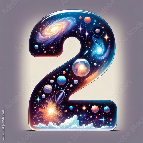 The number five is depicted with a stunning cosmic design, showcasing various galaxies, stars, and celestial bodies against a dark backdrop, highlighting the beauty of the universe.