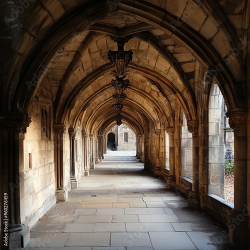 The ornate stone archways and corridors of Nottingham Castle, leading visitors through its ancient halls.