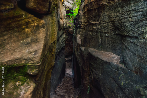 The passage between the rocks in the canyon crevice. Path like nature labirint, landscape
