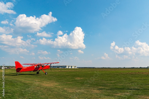 the plane on the runway. Day foto.