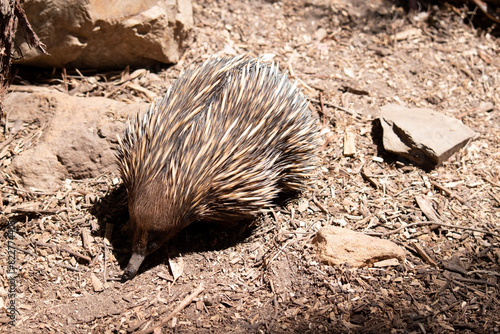 the short nosed has strong-clawed feet and spines on the upper part of a brownish body.