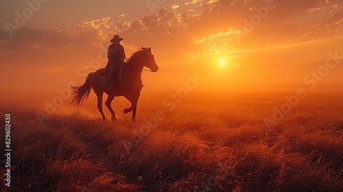 The silhouette of a horse and rider galloping across an open plain, their movements swift and sure against the horizon.