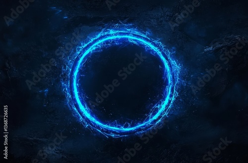 The striking contrast of the neon blue circle creates a captivating visual effect.