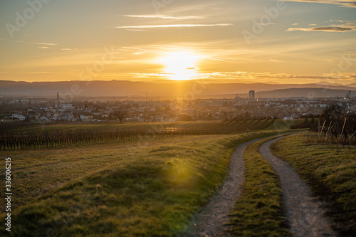 The sun is setting over Eisenstadt, Burgenland, Austria