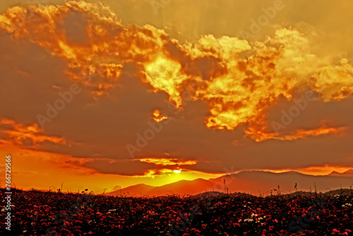 The sunset on the mountain
