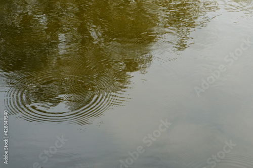 the surface of the river with circles from raindrops