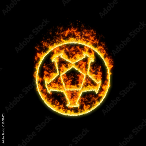The symbol football burns in red fire