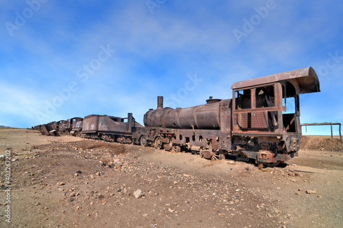 The train cemetery, Salar de Uyuni or salt desert of Uyuni, Bolivia, South America