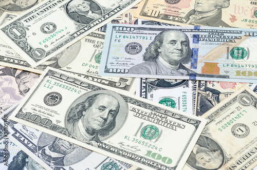The U.S. dollars banknotes of the united States of America. The stack of money for the financial concept of earnings or business concept.