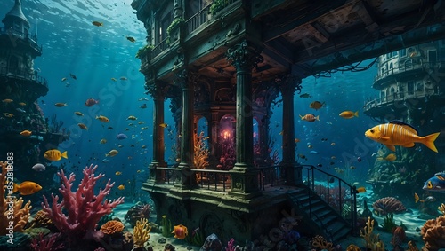 The vibrant colors of a bustling underwater city inhabited by fantastical sea creatures ai_generated