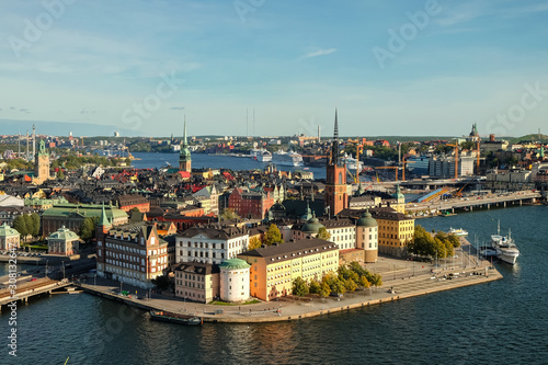 The view of the center of Stockholm and its historical part - Gamla Stan from above. Shot from the tower of City Hall
