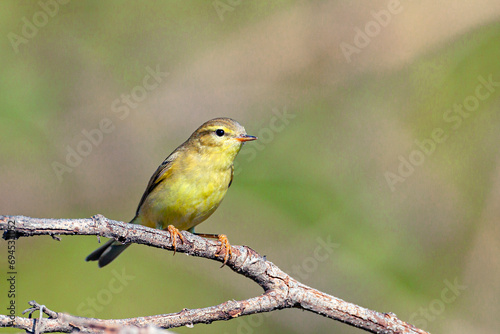 The willow warbler (Phylloscopus trochilus) sits on a branch.