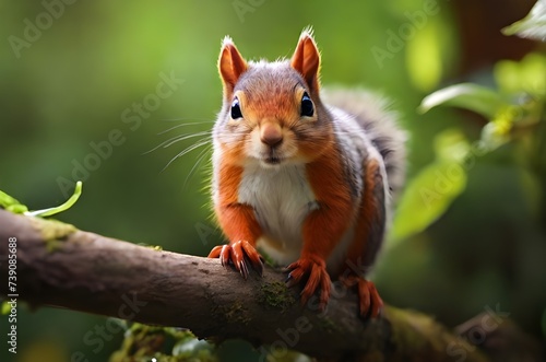 The Woodland Whisperer: A Furry Squirrel in its Natural Habitat, a Peaceful Forest, generative AI