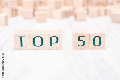 The Words Top 50 Formed By Wooden Blocks On A White Table