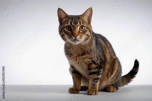 there is a cat that is sitting on a table looking at the camera