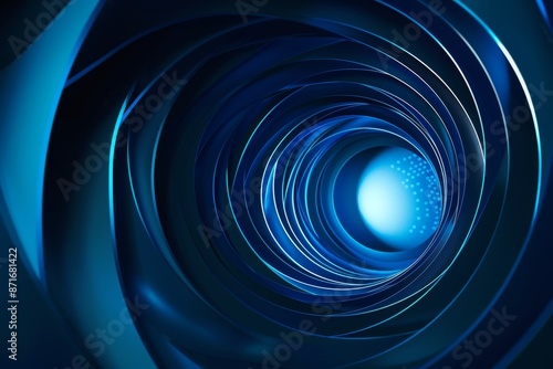 There is a technology fiction-like circular metallic tunnel illuminated by a green light source reflecting off of shiny walls.