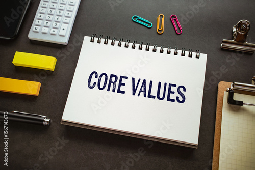There is notebook with the word Core values. It is as an eye-catching image.