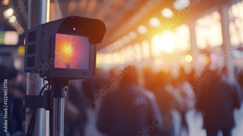 Thermal camera screening crowd at transit hub.