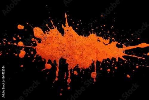 Thick ink splatter spreads across a black background creating bold design