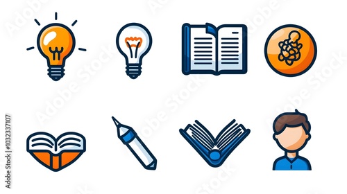 Thin line icon set featuring knowledge symbols like book brain light bulb and globe with minimalist design representing creativity education and intelligence Conceptual icons for learning research