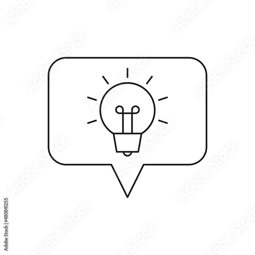 Thinks speech bubble with light bulb icon design isolated on white background
