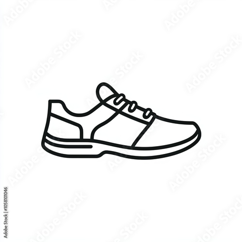 This design features a simple line of running shoes displayed in black and white, suitable for representing fitness activities and sports, icon