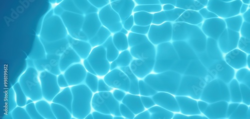 This image captures a serene underwater scene with a vibrant blue water surface, featuring small, white ripples and a sunlit edge, creating a tranquil and peaceful atmosphere