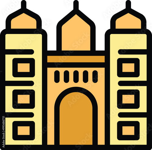 This is a vector illustration of an indian palace building with three domes and an arch entrance
