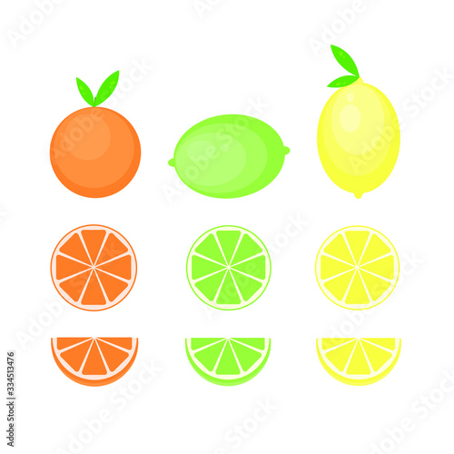 This is vector citrus fruits. Lemon, lime, orange, mandarine isolated on white background.