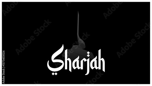 This logo features "Sharjah" in an Arabic-inspired font with a rising monument on a black background, symbolizing cultural heritage, elegance, and modern sophistication.
