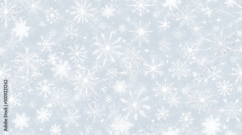 This seamless pattern features intricate white snowflakes on a blue background, perfect for winter decor, packaging, or textile design, evoking a festive atmosphere SEAMLESS PATTERN