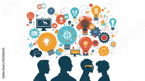 This social network concept illustration features social media icons, symbolizing connection and communication in the digital world
