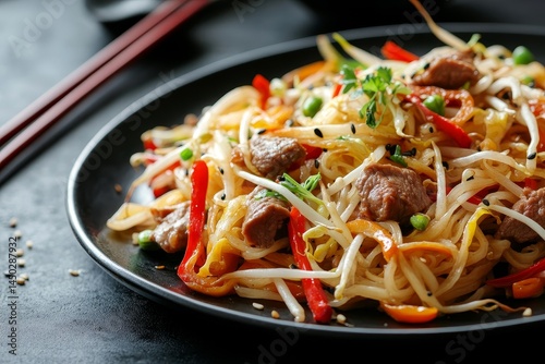This traditional Thai dish, Pad See Ew with Beef, features stir-fried noodles, egg, and Chinese broccoli, all served on a rustic plate for a flavorful culinary experience