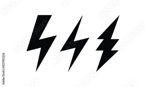 Three Black Lightning Bolt Icons on White Background Representing Energy Power and Speed Suitable for Graphic Design and Symbolism Projects