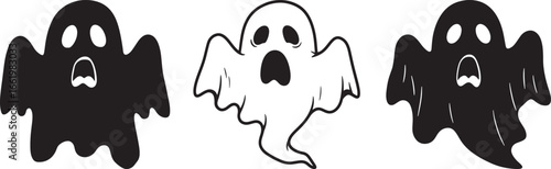 Three cartoon ghosts in silhouette with expressive faces isolated on white background silhouette